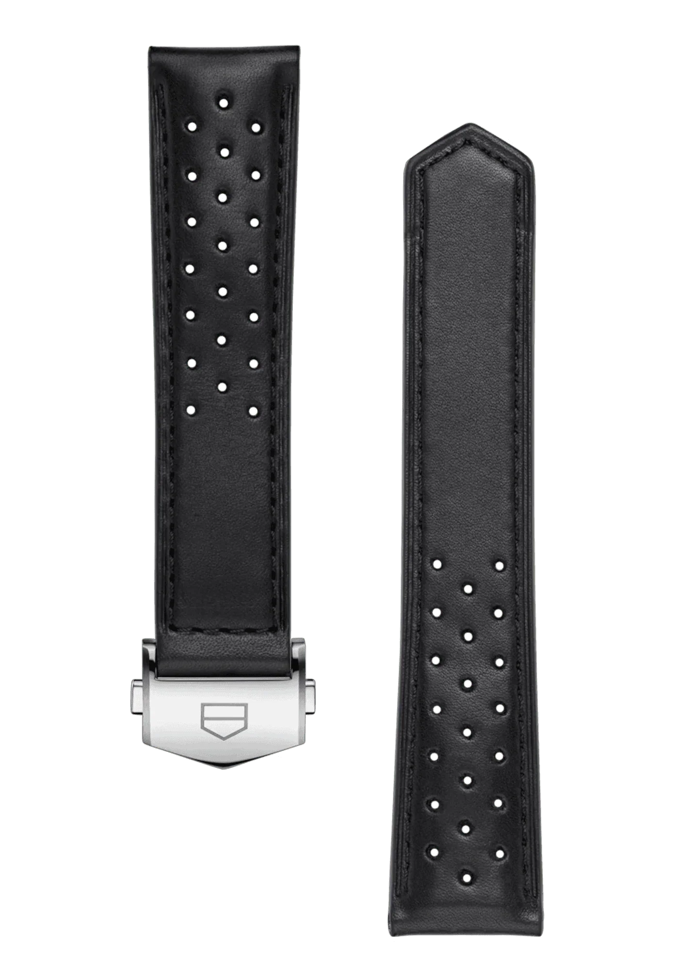 태그호이어 까레라 39mm는 블랙 펀칭 송아지 가죽 스트랩과 완벽한 조화를 이룹니다. 깔끔한 디자인에 블랙 안감이 더해져 고급스러운 분위기를 자아냅니다. 스테인리스 스틸 디플로이언트 버클은 세련된 마감을 더해 안정적이고 스타일리시한 착용감을 선사합니다.
