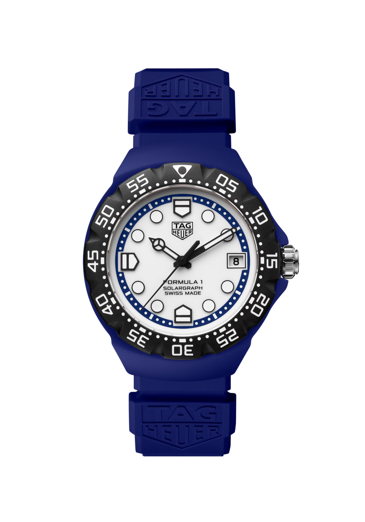 A confident addition to the Formula 1 collection, this TAG Heuer Formula 1 Solargraph (38mm) features a white opalin dial framed by a black TH-Polylight bezel and a striking red flange. Robust, ergonomic and ready for daily wear.